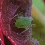 Petits insectes verts provoquant une déformation des feuilles du géranium.