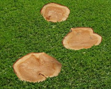 Faites comme pour les pas japonais en pierre, mais en plus rajoutez un morceau de bidim de la taille de la rondelle de bois sur le sable. Pensez à traiter le bois.
