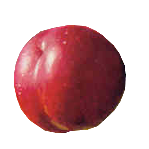 Très gros fruit, coloré, rouge vif et jaune orangé.