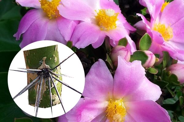 Si elle porte de vraies feuilles contrairement à la plupart des cactus les pereskias sont dotées de solides épines, mais le plus intéressant c’est leur superbe floraison.