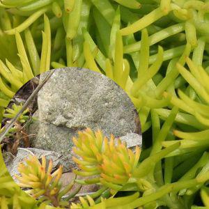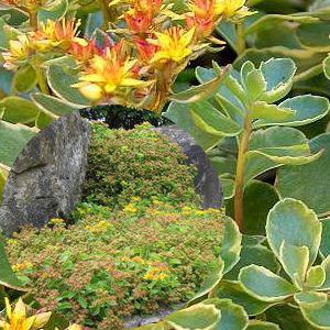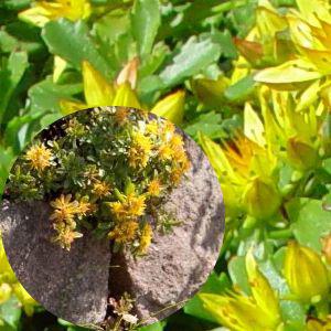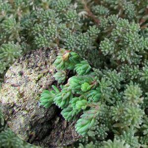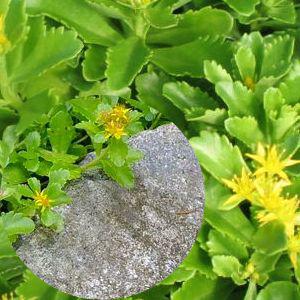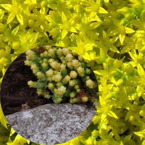 Sédum à feuilles gris-vert. Fleurs en petits bouquets de fleurs étoilées, jaunes en été. Il est très rustique – 15° et se contente d’une terre ordinaire même sèche. Prévoyez une situation ensoleillée.
