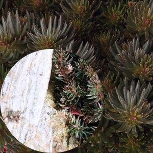 Plante idéale pour toiture végétale, rustique et résistante. Petites feuilles imbriquées, bleues devenant rouges sous l’action du froid l’hiver. Fleurs blanches en juillet. Rustique à -15 °C et plus. Sol ordinaire même pauvre et sec.