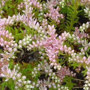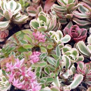 Un très beau sédum au feuillage persistant vert et blanc bordé de rose. Petites fleurs rose pâle en été. C’est un couvre-sol vigoureux, rustique à – 15°. Il lui faut un emplacement chaud et ensoleillé dans une terre ordinaire de jardin.