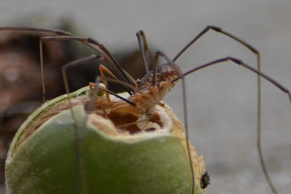 Il ne faut pas se fier à son air dégingandé perché sur ses grandes pattes, le Phalangium opilio ou le faucheux est un redoutable prédateur qui régulera la population des insectes indésirables du jardin bio.