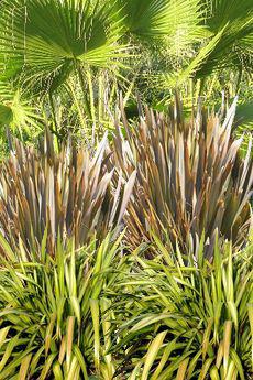 Phormium tenax « Atropurpureum » : feuilles pourpres.