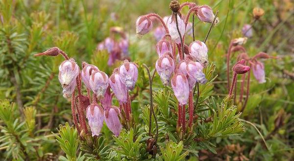 C’est un sous-arbrisseau à feuilles persistantes, à tiges tortueuses rampantes à la base puis qui se dressent à 25 cm de hauteur. La plante porte des feuilles coriaces entières, étroites, sessiles ou à pétiole très court. Le feuillage sur les rameaux est assez dense. Les fleurs violettes ou roses s’épanouissent au printemps ou en été. Elles comportent une corolle urcéolée (qui a la forme d’un vase) renflée au milieu et resserrée aux deux bouts. Le calice reste en place après la floraison. Les fleurs produisent des fruits en capsules, qui contiennent les petites graines.