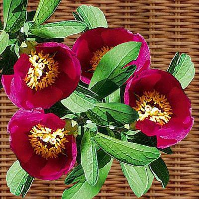 Pivoine arbustive delavayi : Bel arbuste de 1 m 80 au beau feuillage découpé, grandes fleurs simples rouges.