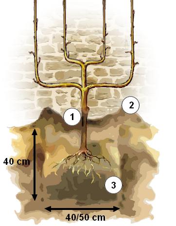 Le point de greffe doit se trouver à 10 cm au-dessus du niveau de la terre.(1)