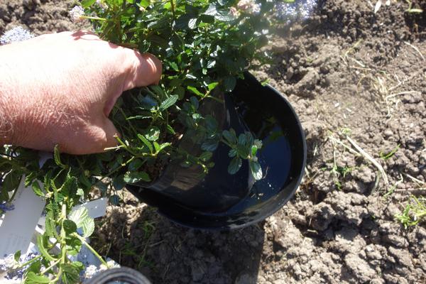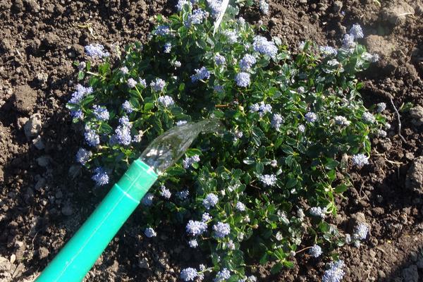 Plongez la motte dans un récipient rempli d’eau pendant une heure avant de planter votre ceanothus thyrsiflorus repens.