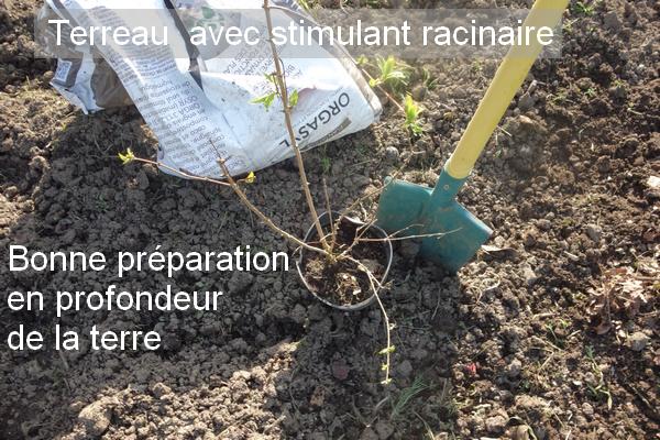 À la terre extraite du trou, mélangez un excellent terreau riche en stimulant racinaire et en fertilisants organiques.