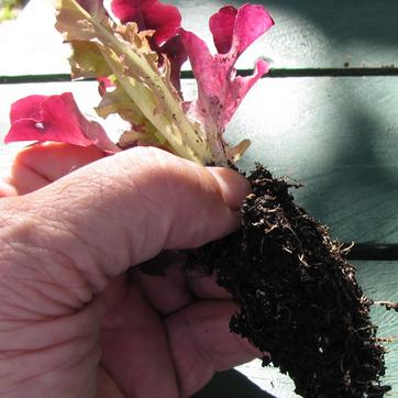 Avec un transplantoir repiquez vos salades sans couvrir le collet, à cette saison pour éviter la pourriture un tiers de la motte doit se trouver au-dessus du sol. Arrosez.