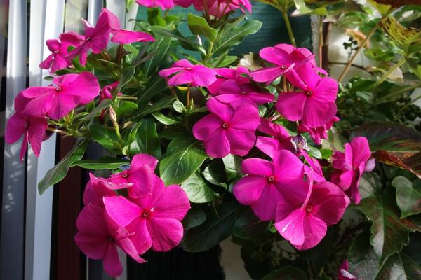 Avec des étés de plus en plus chauds, il va falloir garnir nos jardinières et suspensions de plantes résistantes à la chaleur et à la sécheresse. Heureusement, il en existe de nombreuses qui répondront à ces critères. Mais celle qui a ma préférence c'est particulièrement la pervenche de Madagascar (Catharanthus roseus) « Cora Cascade ».