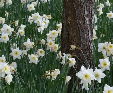 Il est possible de garnir le pied d’un arbre à condition de planter des bulbes à fleurs qui fleurissent très tôt en saison, car sous l’arbre l’été ils seront confrontés à la sécheresse et à l’ombre.