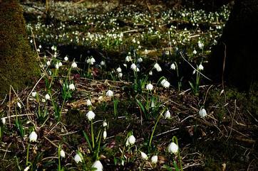 Parmi les bulbes adaptés à cet emploi, la Perce-Neige est parfaite. Galanthus nivalis, à clochettes simples, mais aussi ses variétés doubles comme « Flore-pleno ».