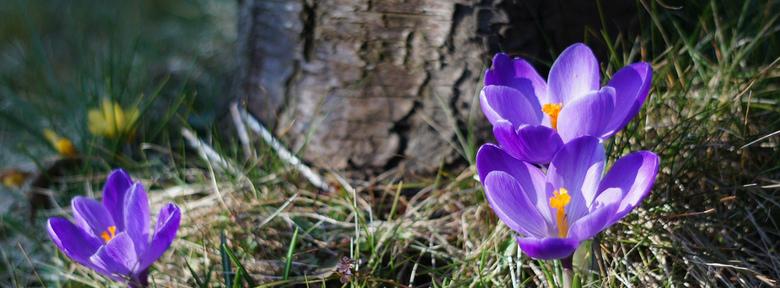 Les Crocus conviennent aussi fort bien, surtout les variétés cultivées et hâtives de Crocus chrysanthus. Elles sont multiples et proposent une vaste gamme de couleurs : ‘Cream Beauty’, ‘Snow Bunting’, ‘Blue Pearl’, etc..