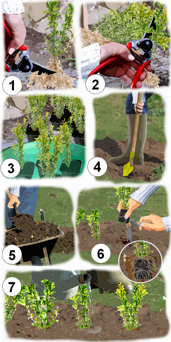 Lorsqu'ils sont en racines nues (ils sont moins chers), habillez les racines et diminuez le feuillage de moitié. 2