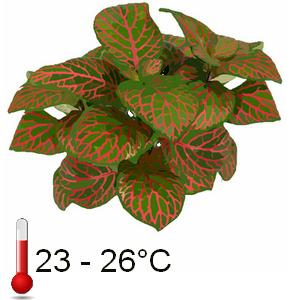 Petite plante rampante de 15 cm de hauteur très appréciée pour ses petites feuilles, fines, vert foncé et aux nervures très marquées, rouge et crème. Les feuilles sont petites, environ 3 cm de long,