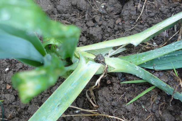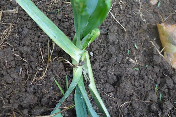 Comme ces larves attaquent le collet des plantes, vos poireaux s’ils ont été plantés profondément repartiront comme on le voit sur cette image.