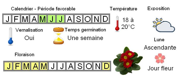 La germination des primevères s’effectue en deux semaines à une température minimale de 15 à 18°.