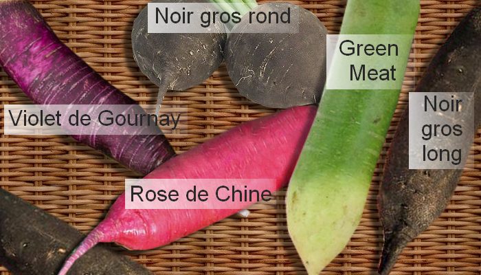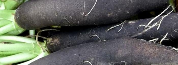 Radis d’hiver à longue racine violette et à la chair blanche et douce.