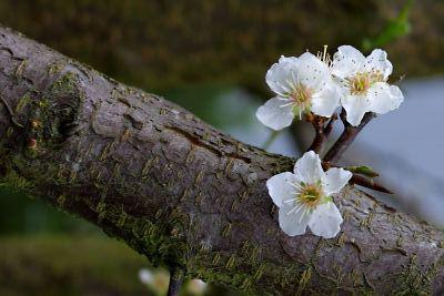 Ici des bourgeons latents démarrent sur cette vieille branche de prunier.