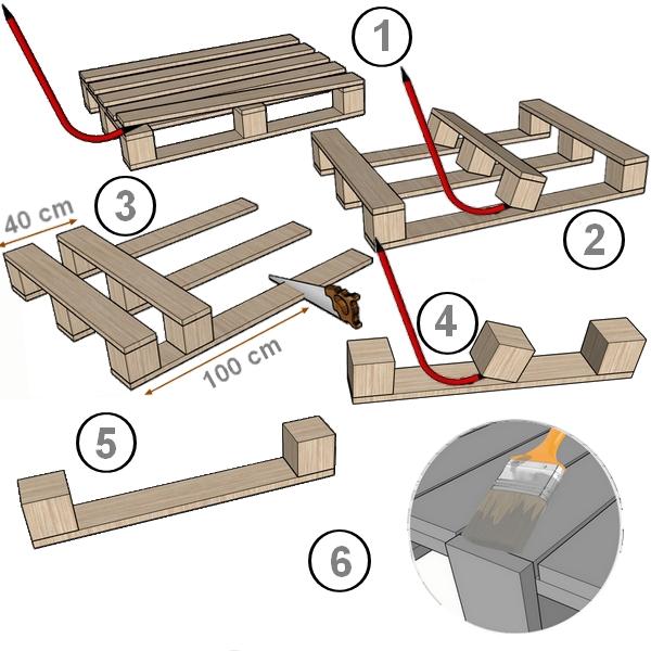 Vous aurez besoin de 3 palettes (selon le modèle utilisé, ici 1500 mm x 1100 mm).