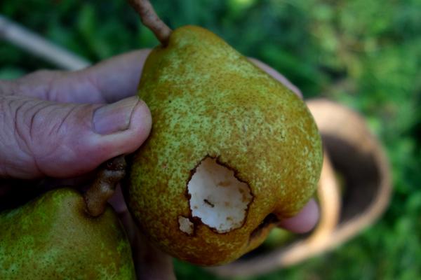 Les poires blessées, sans pédoncules, tachées, attaquées par les insectes comme les frelons ou les guêpes, etc. sont retirées.