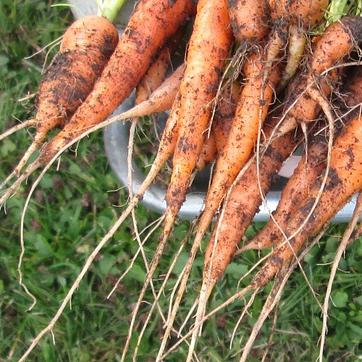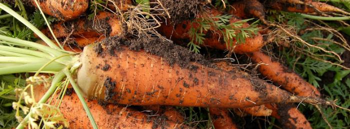 Pour une bonne conservation, la récolte des carottes est mise à ressuyer sur la terre du jardin.
