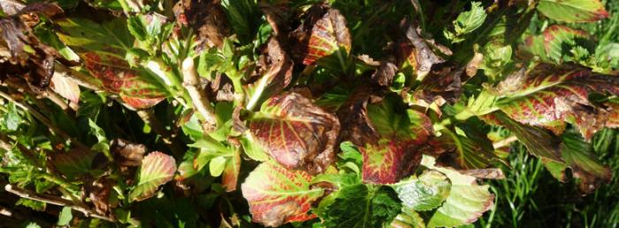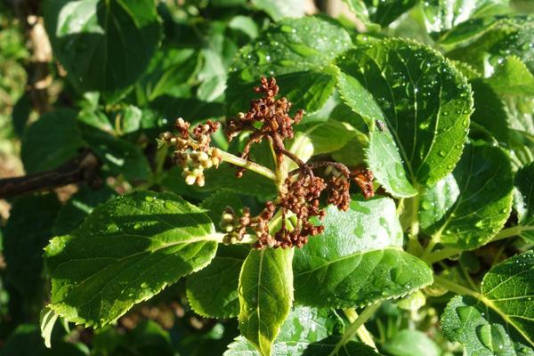 Dès les premières douces journées au printemps, les bourgeons des hortensias gonflent et débourrent rapidement. C’est à ce moment-là que de fortes gelées matinales si elles sont répétées mettent à mal la végétation tendre et fragile.