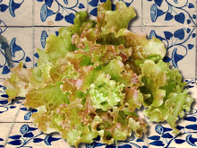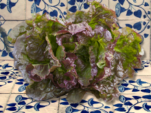 Grosse salade aux feuilles croquantes vertes bordées de rouge. Culture facile.