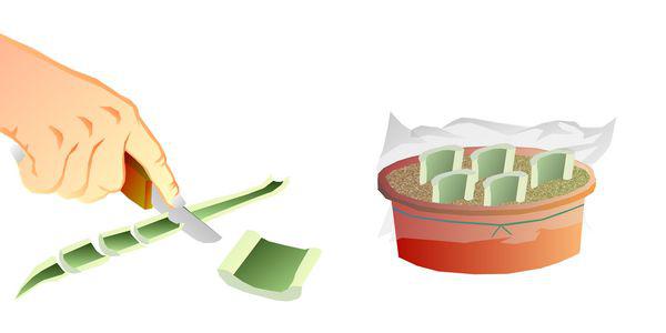 Par boutures de feuilles pour les formes à marge non panachée pendant les mois d'été.