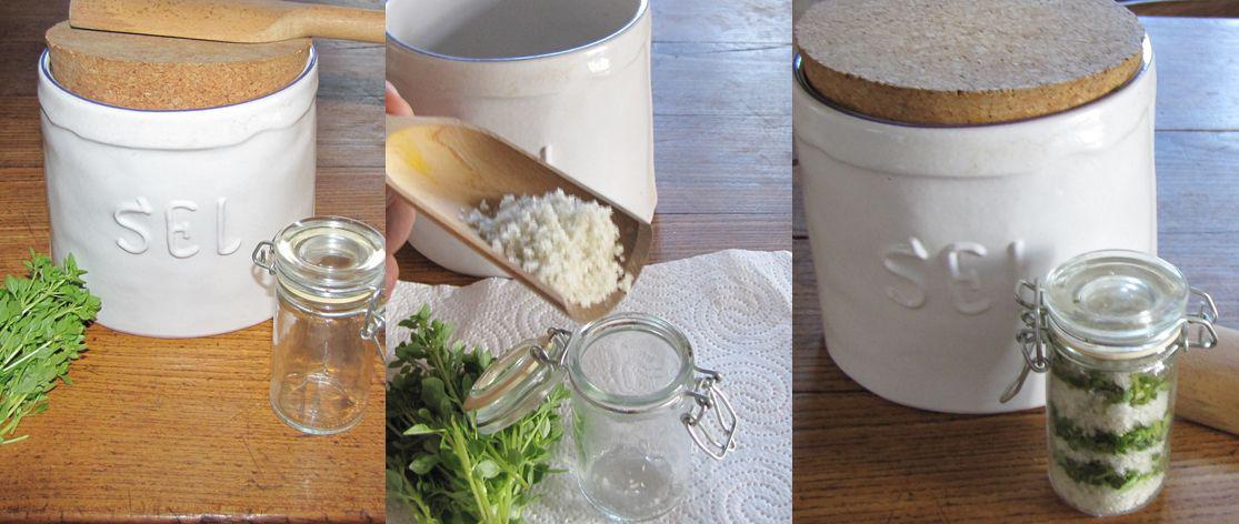 Le sel va prendre tout le parfum de l’herbe, tandis que l’herbe sera conservée par le sel. On utilise cette préparation, dans la cuisine, pour saler les sauces, les potées, les soupes, etc. Étiquetez les bocaux.