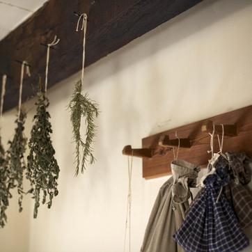 Les plantes aromatiques à feuilles sont mises en bottes et suspendues la tête en bas, roulées dans un papier pour éviter la poussière.
