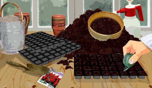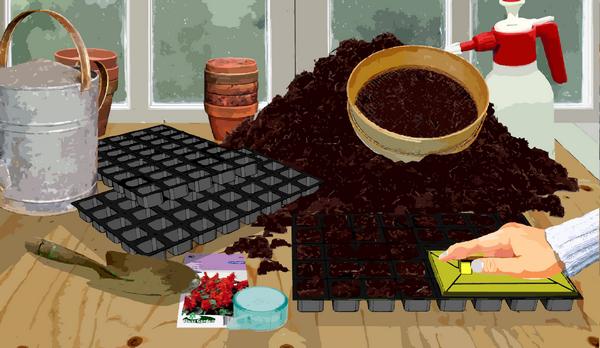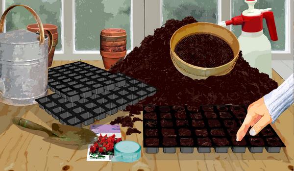 Remplisez les plaques de culture avec du terreau pour semis fin. et tassez.