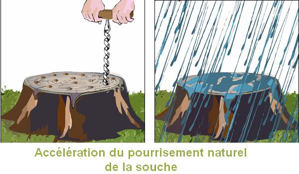 Attention ! les produits de dessouchage proposés dans le commerce sont dangereux et polluants, malgré les mentions rassurantes des industriels sur leurs emballages. De plus ces produits vous interdisent du fait de leur rémanence toute culture après le dessouchage. Ne jamais les employer pour des arbres situés dans un potager.