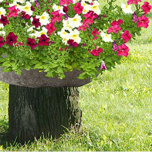 Pour les très grosses souches, vous pouvez vous en servir de support pour recevoir des pots de fleurs et pour même les très grosses souches une vasque (voir le modèle déco du jardin).