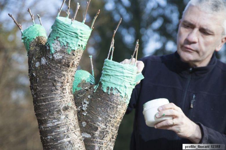 Après la ligature, recouvrir le plateau et la tête du greffon de mastic à greffer.