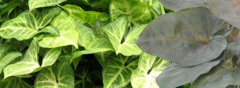 Syngonium podophyllum 'Green Gold' : porte des feuilles crème, jaune et vert.