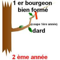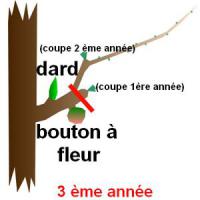 Il faut compter 3 ans de taille en général pour obtenir d’un rameau à bois un rameau porteur de fruits.
