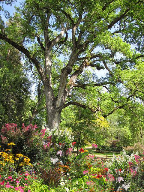 La taille des grands arbres en transparence permet à la lumière d’atteindre les massifs de fleurs cultivés sous la ramure.