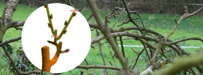 Ces petits bourgeons sont disposés sur toute la longueur des rameaux à bois. Après la taille hivernale, ils peuvent évoluer en dard, brindille, nouveau rameau à bois, etc.