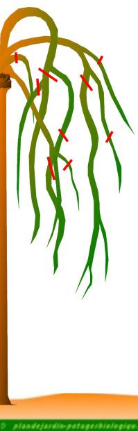 Au printemps, supprimez quelques grosses branches pour aérer le centre et donner une jolie forme pleureuse.