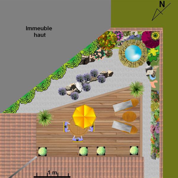 Niché en ville, ce jardin au pied d’un immeuble à une forme trapézoïdale. Les propriétaires ont peu de temps pour l’entretien.