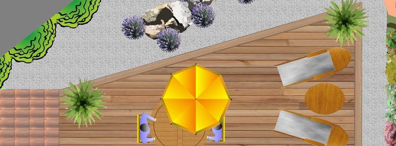 Pour ce jardin à la forme atypique pour optimiser l’espace, il a été créé une terrasse en bois de forme triangulaire.