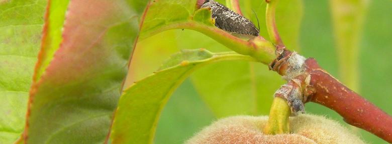 Petit papillon gris avec des traits blancs de 15 mm d’envergure pond ses œufs sur les pêchers. Les chenilles causent des dégâts sur les fruits. Il existe des traitements bio pour réduire l’impact de ces attaques.