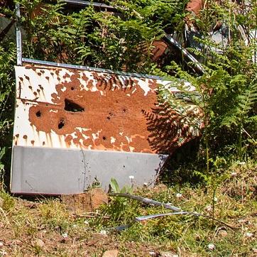 Les friches au fond des jardins ou des terrains d’anciennes fermes souvent servaient à déposer de vieux outils, de vieilles batteries et parfois même des carcasses de voiture !