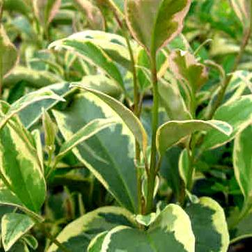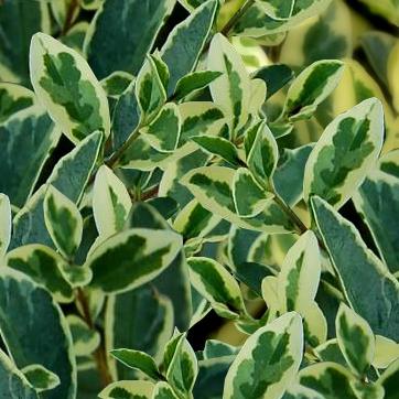Feuillage panaché de jaune. En été, il se couvrira de petites fleurs blanches parfumées.