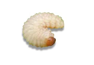 La larve du balanin (ver de la noisette) fait environ 15 mm de longueur.
