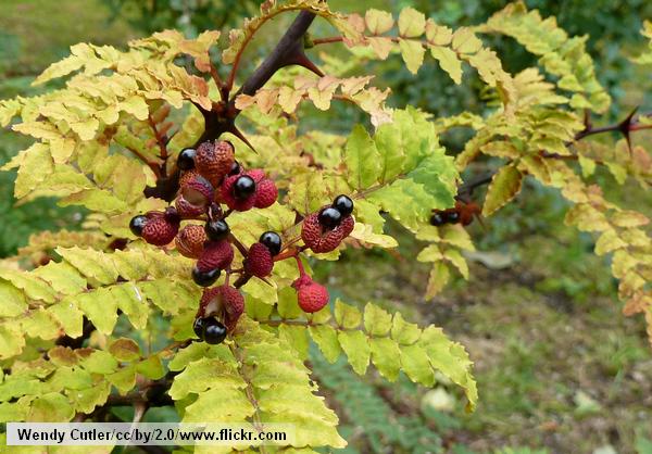 Selon la taille du sujet planté, il donne des baies rouges après une floraison printanière jaune (sans grand intérêt ornemental). C’est à partir de ces baies appelées baies du Sichuan que l’on fabrique le poivre du Sichuan.